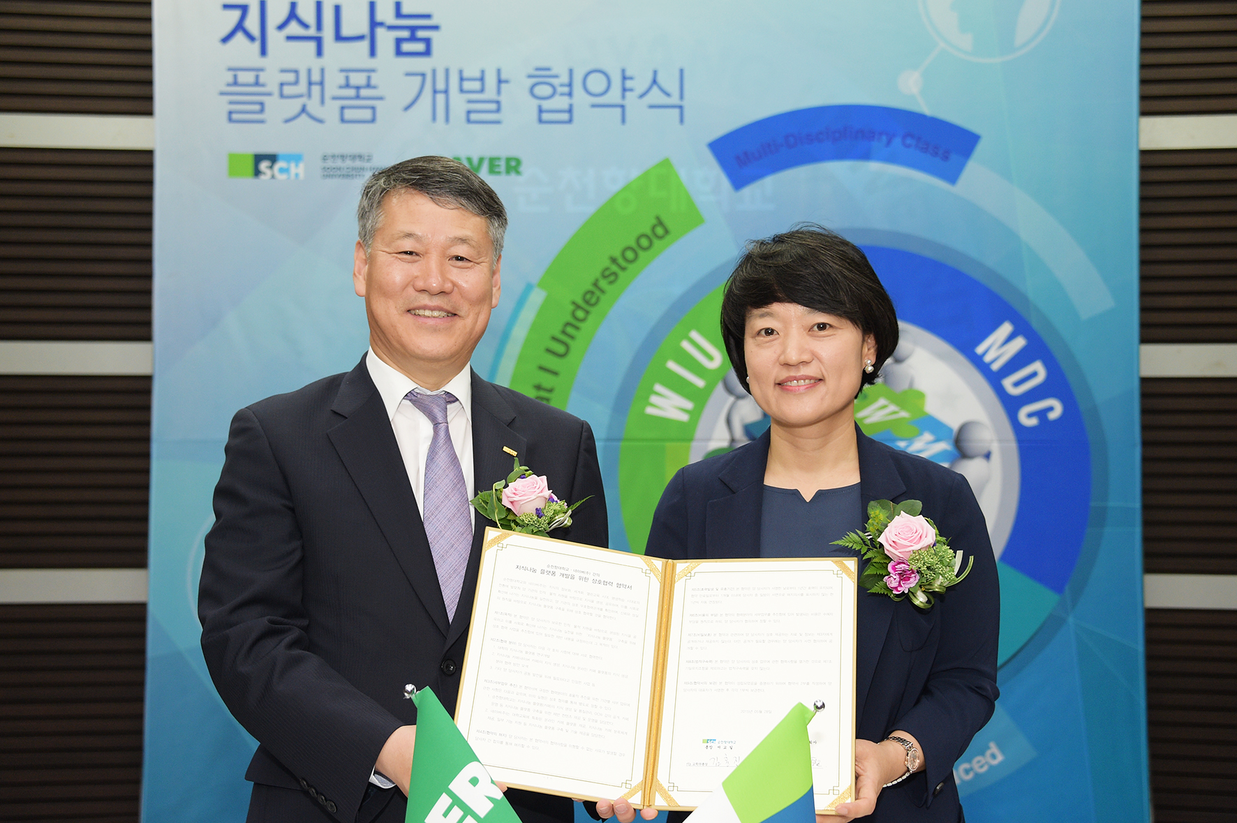 네이버와 순천향대학교는 네이버 카페를 활용한 지식 나눔 플랫폼 구축을 위한 업무 협약을 28일 체결했다.