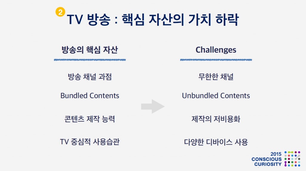 한마디로, TV 방송이 가지던 기업가치의 원천이 점차 사라져 간다는 느낌입니다.