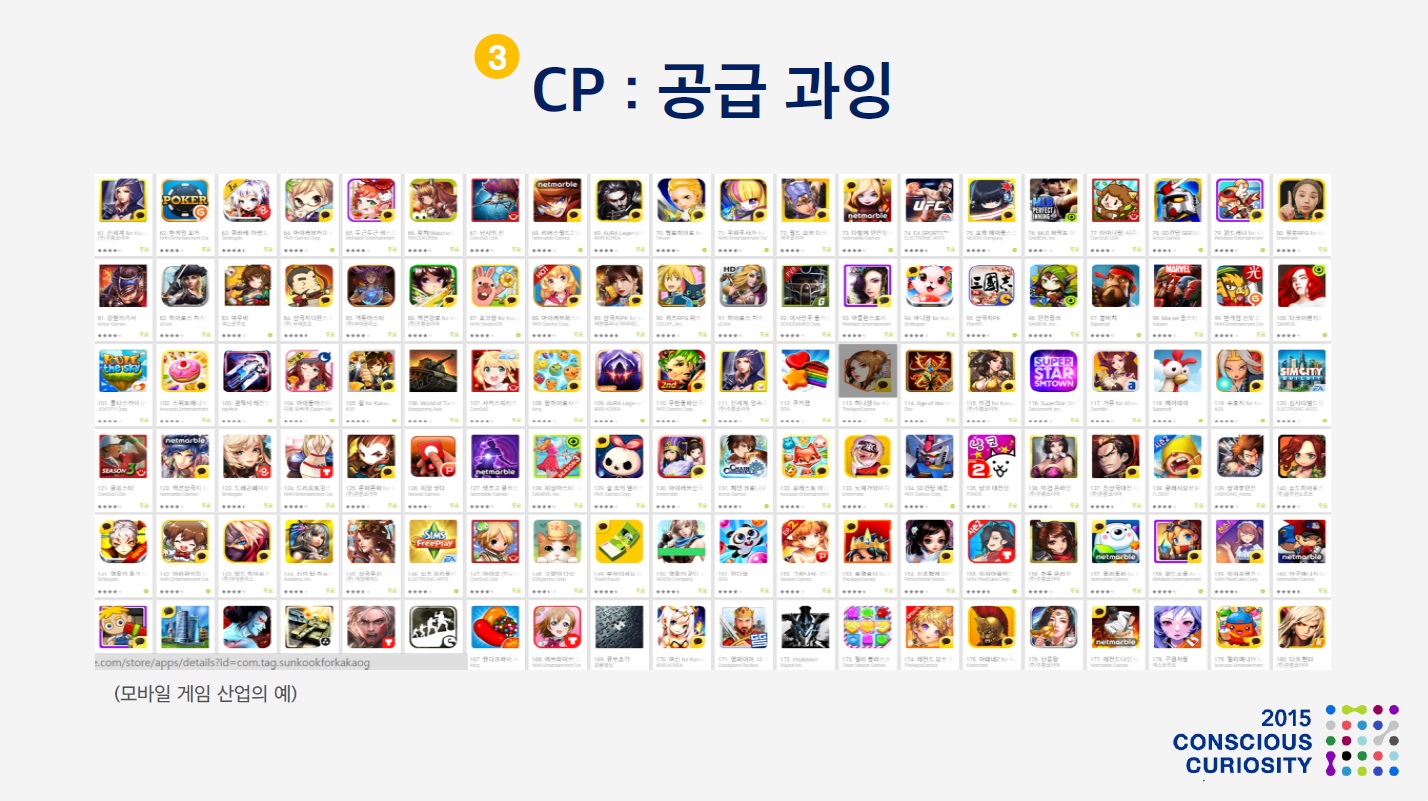 세번째로 컨텐츠 프로바이더 영역의 시사점을 살펴 보겠습니다. 여기서는 모바일 시대의 대표 컨텐츠 산업인 모바일 게임의 예시를 들어볼까 합니다