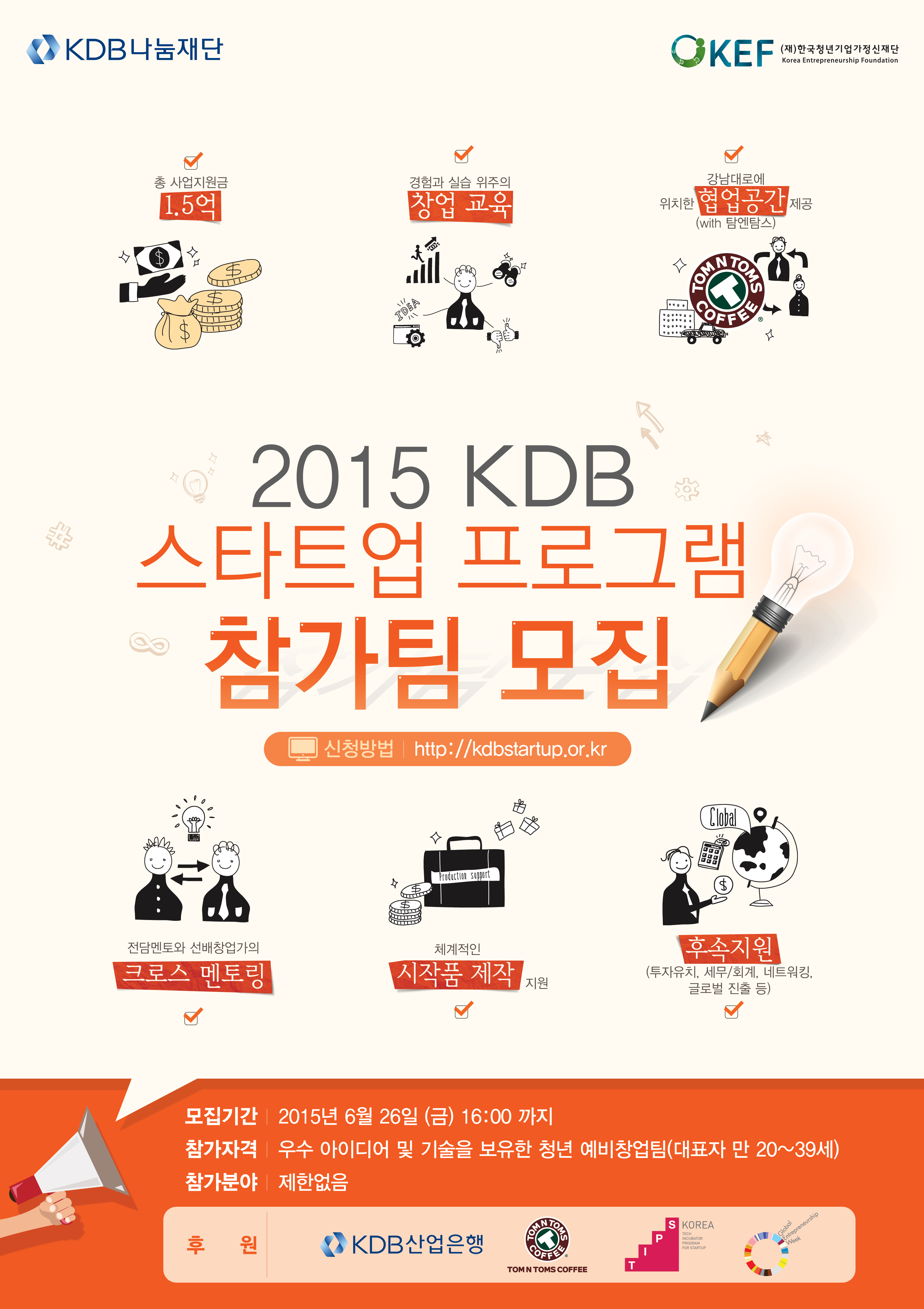 2015 KDB 스타트업 프로그램 참가팀 모집 공고
