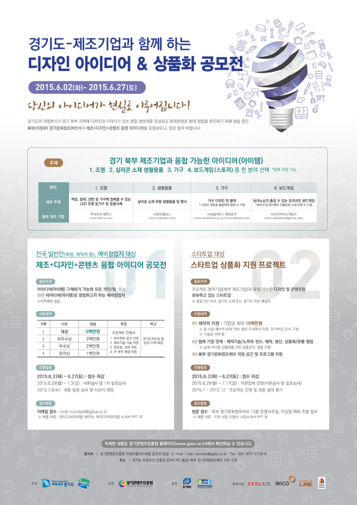 곽봉군 경기콘텐츠진흥원장은 “경기도는 그간 많은 공모전이 우수 아이디어 발굴에만 그치는 한계가 있었는데, 이번 경기북부 제조기업의 협력으로, 실질적으로 상품화 까지 연결할 수 있는 협력체계를 갖춘 공모전을 개최하게 되어 디자인‧콘텐츠 분야의 많은 분들에게 좋은 기회가 될 것이다”고 전했다.