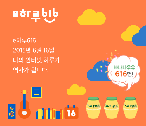 2004년 시작된 ‘e하루616’은 지금 이 순간 나에게 가장 소중한 인터넷 세상을 기록하여 나만의 역사를 만들어보자는 캠페인으로 올해로 12번째이다. 다음세대재단과 (주)다음카카오가 주최하며 블로터닷넷, 국립중앙도서관디지털도서관 오아시스가 파트너로 참여한다.