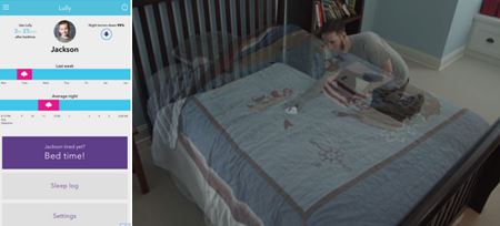 3. 서비스 내용(iOS):원형의 스마트 기기와 앱으로 구성된 Lully는 가위에 눌리는 이른바 ‘수면마비’를 겪는 아동의 수면 사이클 및 구조를 정상화시켜 숙면 유도를 도움. Lully앱이아이의 수면 사이클 중 수면마비가 발생하는 시간대를 파악하면, 해당 시간대에 아이의 침대 매트리스 하단에 부착된 기기가 자동으로 3분 가량 진동함으로써 수면마비를 개선시킴