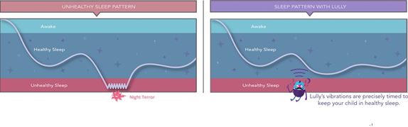 – 앱 내 알고리즘은 아이가 수면마비에 걸리는 렘수면 단계에 진입한 시간대에 Lully기기에 신호를 보내고, 자동으로 기기가 3분간 진동함으로써 안정적인 수면 사이클을 유지할 수 있도록 함