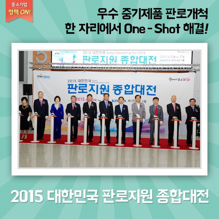 중소기업청(청장 한정화)은 우수 중소기업제품의 홍보 및 판로확대를 위한 「2015 대한민국 판로지원 종합대전」을 6월 25일부터 27일까지 일산 킨텍스에서 개최되었습니다.