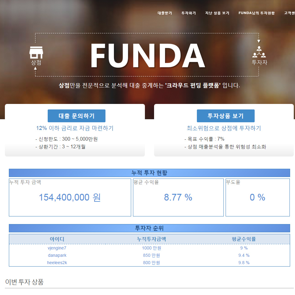 20150709_더벤처스, 크라우드 펀딩 플랫폼 '펀다'에 투자_2_펀다 메인