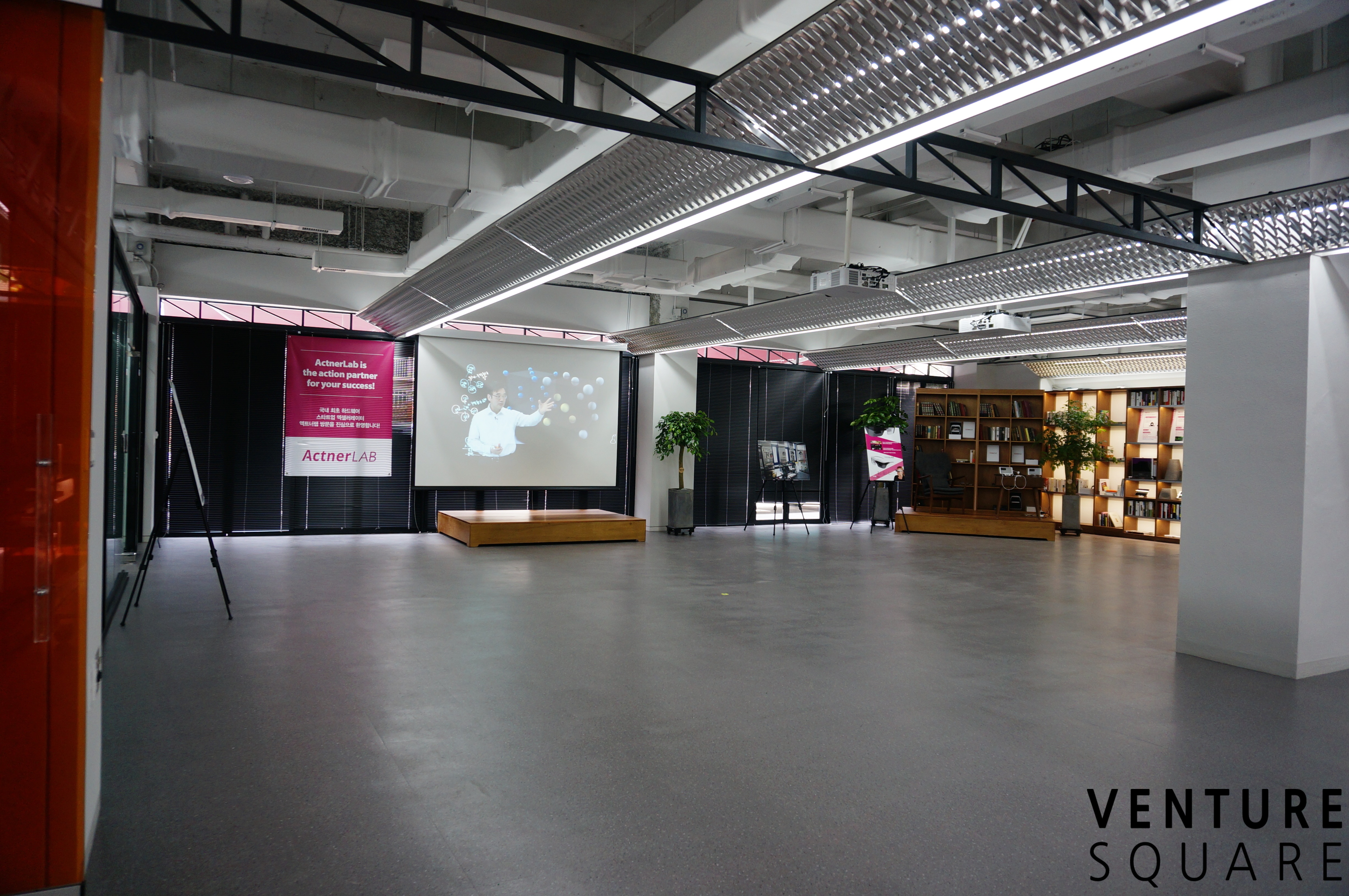 이곳에서는 앞으로 다양한 종류의 이벤트, 강연등이 열립니다. 어제 개소식도 이곳에서 열렸습니다. 지금은 행사 무대를 철수 하고 비어있는 상태입니다.