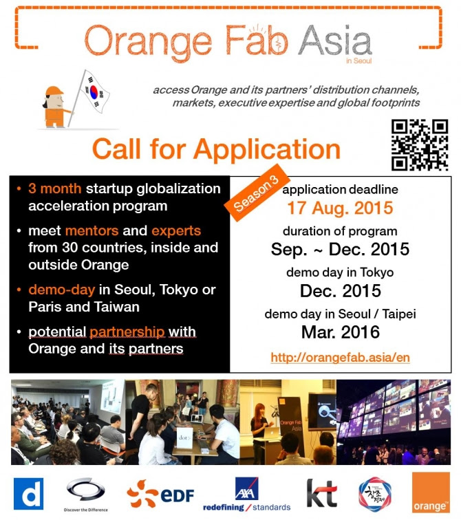 글로벌 유무선 통신 기업 오렌지는 자사의 글로벌 네트워크와 노하우를 통해 스타트업의 글로벌 시장 진출을 돕기위해 글로벌 시장진출 액셀러레이터 프로그램, 오렌지 팹 아시아(Orange Fab Asia) 시즌3에 참가할 기업을 모집한다.
