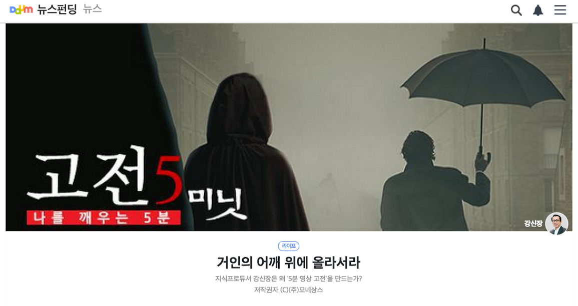또 다음카카오와 함께 ‘고전5미닛’ 프로젝트를 이끈 모네상스 강신장 대표가 연재하는 뉴스펀딩도 진행한다.