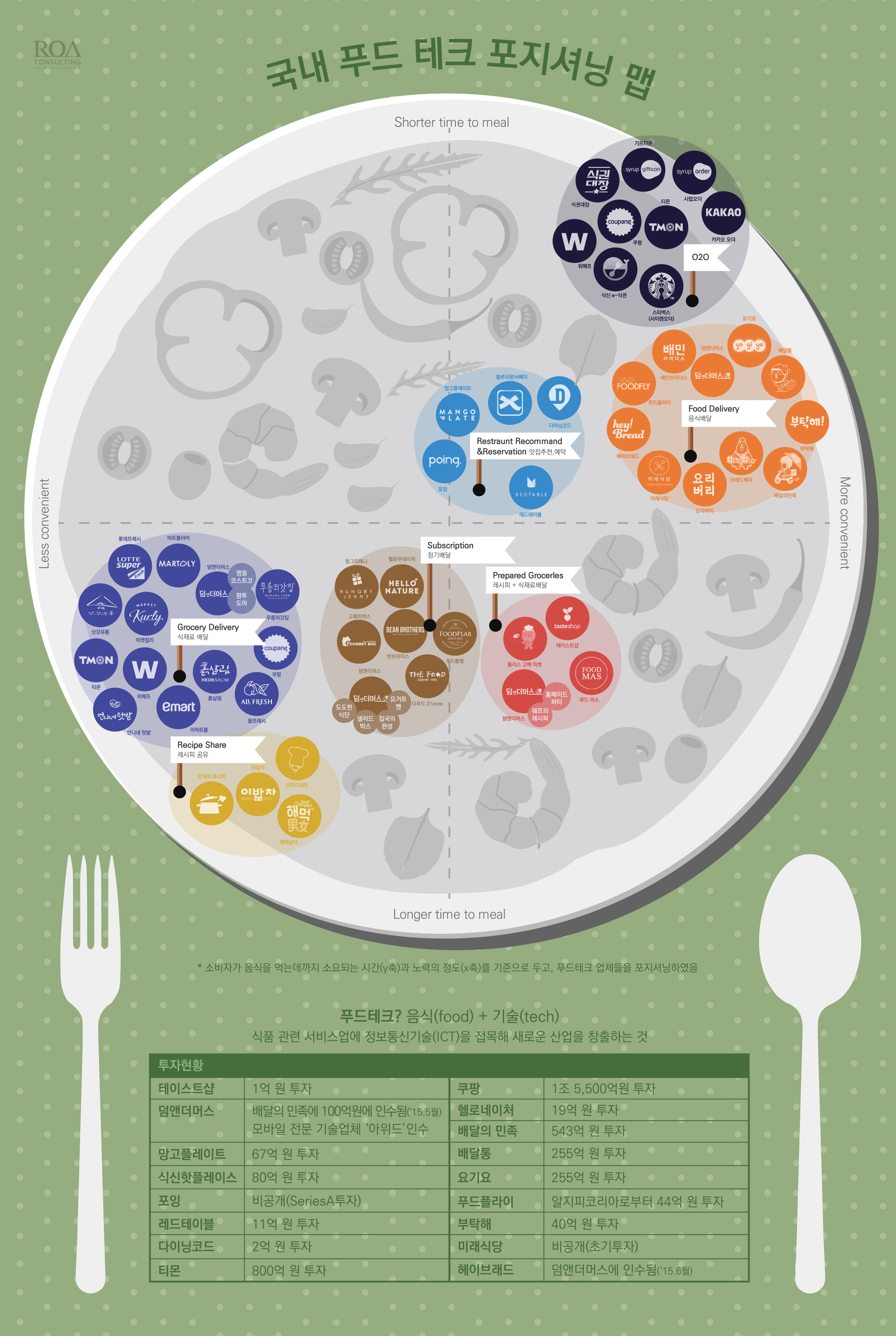 이번에는 국내 주요 푸드(테크) 스타트업의 지형도를 살펴보았습니다. 국내에서는 처음으로 주요 푸드 스타트업의 포지셔닝 맵을 정리해 봤고요, 인포그래픽과 IT알려줌 영상으로 제작해 보았습니다.