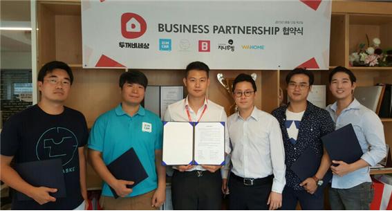 이번 협약에는 온라인 부동산 중개서비스 ‘두꺼비세상’을 중심으로, 이사 관련 서비스 ‘다섯시삼십분’, ‘지니커뮤니케이션’, 세탁배달서비스 ‘위시앱코리아’, 청소서비스 ‘원라이프원테크놀러지’, 피부관리 서비스인 ‘BIN인터내셔널’, 총 6개의 스타트업 대표가 참석하였으며 공동 양해각서를 맺고 1회 서비스 무료이용권 및 다양한 할인혜택을 제공키로 하였다.