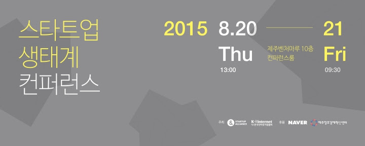 스타트업 얼라이언스와 한국인터넷기업협회가 공동으로 주최하는 ‘2015 스타트업 생태계 컨퍼런스’가 20일부터 이틀간 제주벤처마루에서 개최된다.