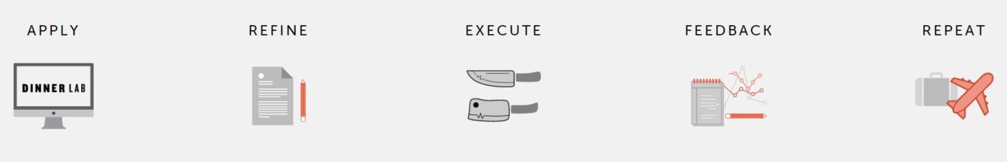 – 참여를 원하는 셰프들은 자신의 프로필과 함께, 요리하고자 하는 코스 메뉴를 작성해 제출함. Dinner Lab측에서 메뉴 제안을 수락하면, 그 날의 셰프로 참여해 자신의 요리를 대접할 수 있음. 식사를 마친 회원들은 요리의 맛∙창의성 등에 대해 평가하며, 이를 기반으로 Dinner Lab 측에서는 해당 셰프를 재초청할 지 여부를 결정함