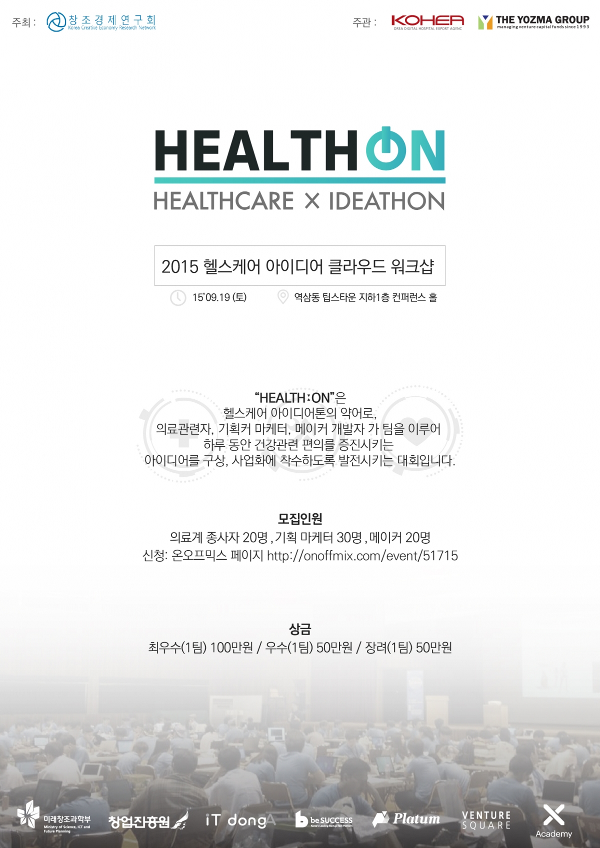제1회 헬스케어 해커톤은 요즈마그룹과 한국디지털병원수출사업협동조합이 주관하고, 창조경제연구회가 주최하는 행사로, 9월 19일(토) 1일간 역삼동 TIPS 타운에서 열린다.