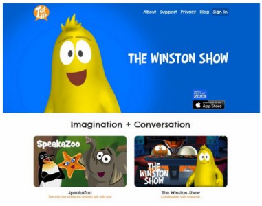 3. 서비스 내용(iOS, Android): 애니메이션 속에서 말하는 동물 캐릭터와 실제 대화를 나눌 수 있도록 제작된 어린이용 앱. ToyTalk은 애플(Apple)의 시리(Siri), 구글(Google)의 음성인식과 같이 아이들이 대화를 나누는 패턴 분석을 통해 자연스러운 대화가 될 수 있도록 질을 높이고 있음. 자연스러운 대화를 위해 캐릭터의 음성은 기계음이 아닌 ToyTalk 직원들이 직접 녹음을 하고 있으며, 녹음을 위해 자체 전문 스튜디오를 제작함