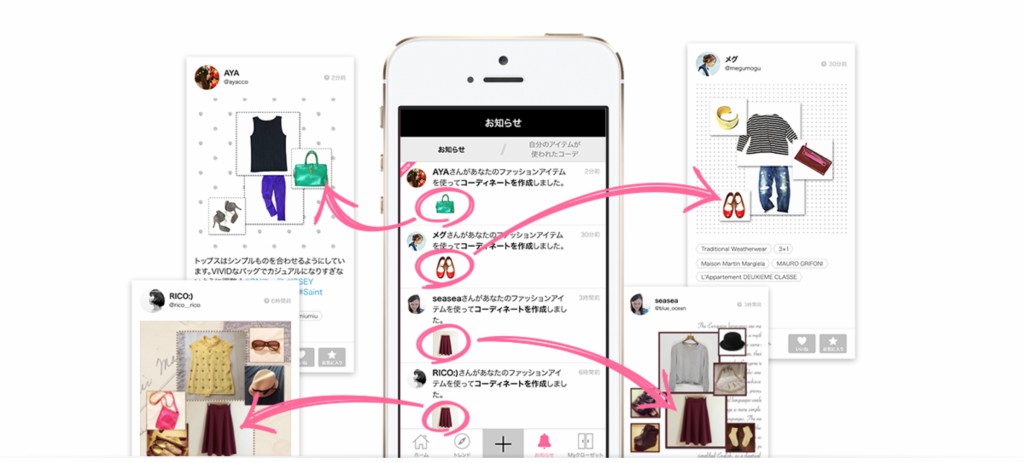 3.    서비스 내용(Android, iOS): 자신이 갖고 있는 패션 아이템들을 등록해두고, 소셜 상의 친구들로부터 코디 추천을 받게끔 도와주는 서비스. 사용자들은 자신이 등록한 상품뿐만 아니라 다른 사용자들의 아이템을 가져와 원하는 코디를 만들어보고 공유할 수 있음