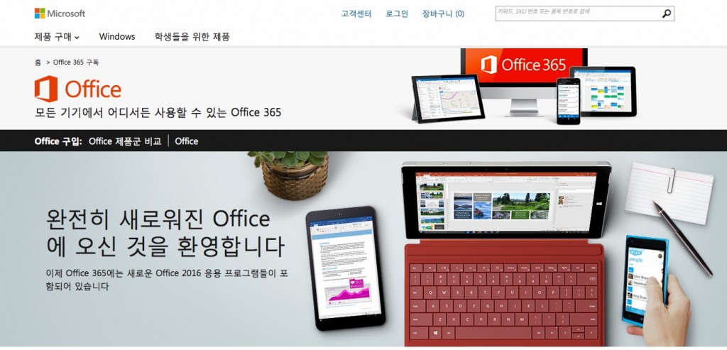 마이크로소프트 웹 사이트에서 오피스2016 이용 / 오피스365 구독에 대해 자세히 살펴보기 [바로가기]