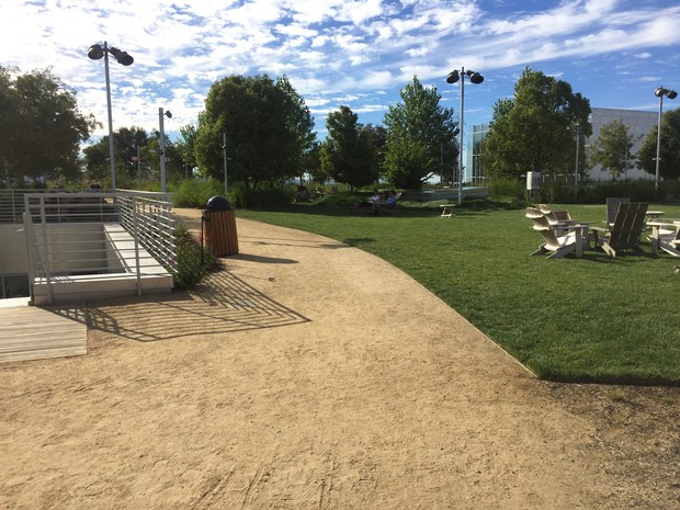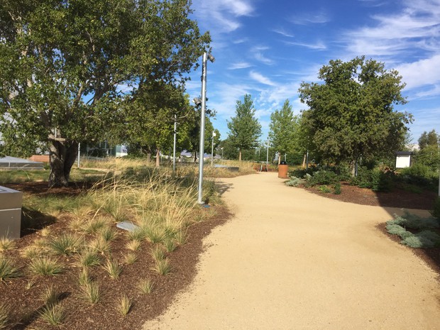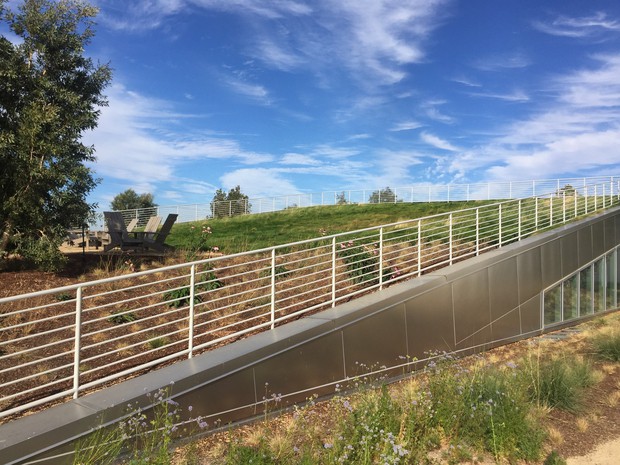 놀란 것은 옥상정원의 모습이다. 옥상에 있다는 생각이 들지 않는다. 흙바닥과 잔디, 그리고 여기저기 4백그루의 나무가 심어져 있는 산책로는 그냥 도시속의 생태공원 같다는 느낌이다. 도저히 옥상에 있다는 생각이 들지 않는다.