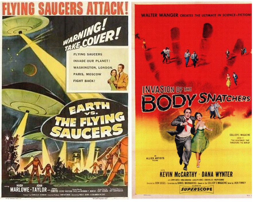 이 시기에는 SF영화도 시대적 배경을 매우 잘 나타낸다. 대표적인 작품으로 1956년 같은 해에 개봉된 <지구 대 비행접시 (Earth vs. the Flying Saucers>와 <신체강탈자의 침입(Invasion of the body snatchers)>가 있다.