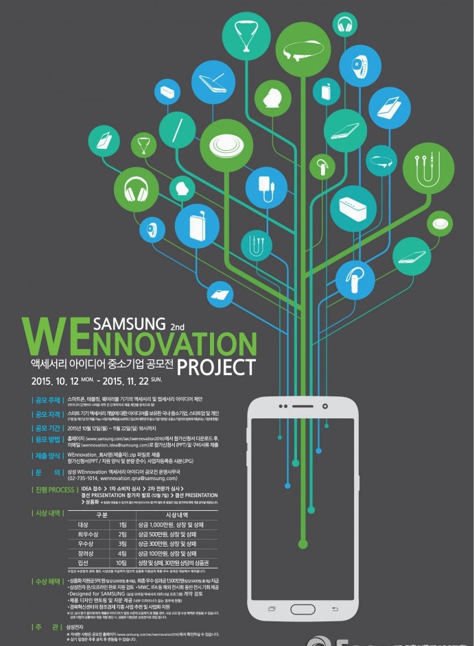 삼성전자가 스마트 기기 액세서리 아이디어를 공모하는 제2회 ‘삼성 위노베이션 프로젝트(WEnnovation Project)’ 의 참가자를 12일부터 모집한다.