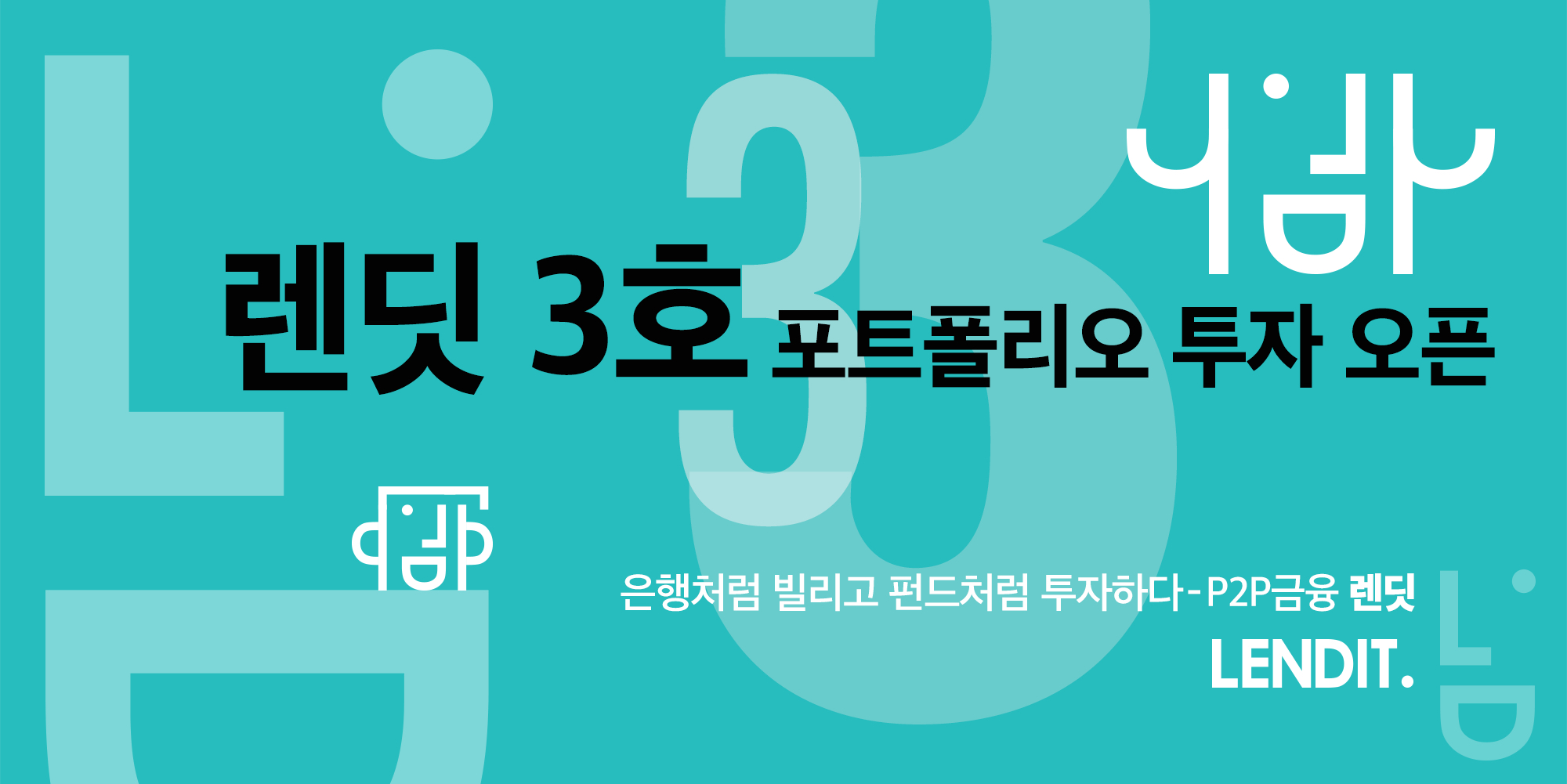 핀테크 기반 P2P 금융기업 렌딧은 총 4억원을 모집하는 3호 포트폴리오 투자를 10월 13일 화요일 오픈한다고 밝혔다.