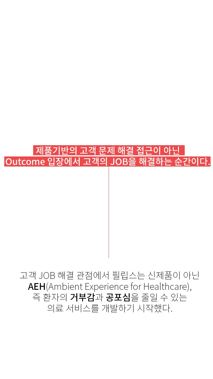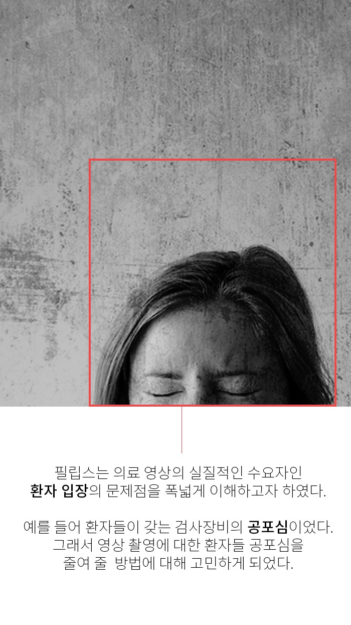 그래서 필립스는 AEH라는 새로운 개념을 도입합니다. 이 기기는 환자들이 갖는 검사장비의 공포심이라는 근본적인 문제, 즉 JOB을 해결하는 데 집중했습니다.
