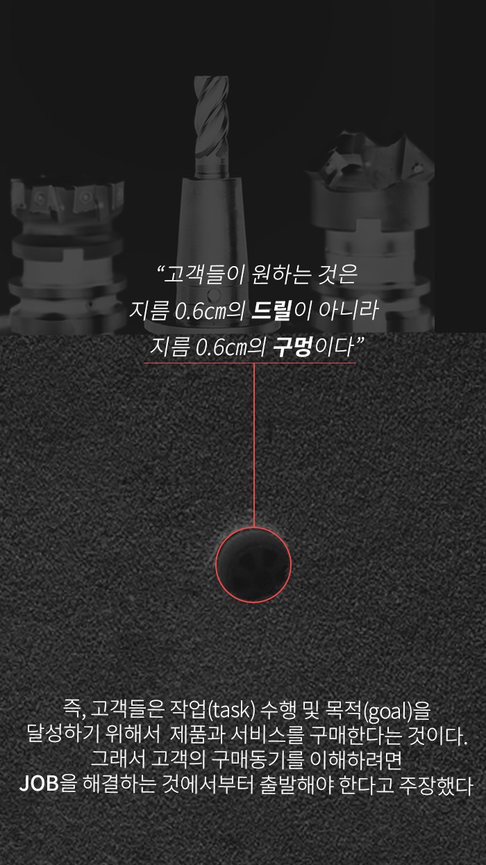 “고객이 원하는 것은 지름 0.6cm의 드릴이 아니라, 지름 0.6cm의 구멍이다”