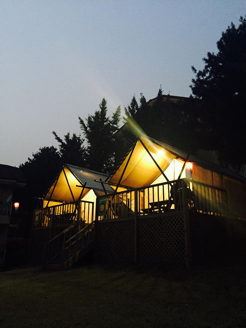 구본욱 개발자님은 캠핑 의자에 앉아서 맥주 한잔 하는 걸 나름대로 기대하고 오셨는데, 이곳 글램핑장에 딱 캠핑 의자만 없어서 무척 아쉬워했습니다. (관리자에게 문의하니 캠핑 의자가 유난히 많이 도난당하거나 파손되는 물품이라 대여를 못 해주신다고 하네요. ㅠㅠ)