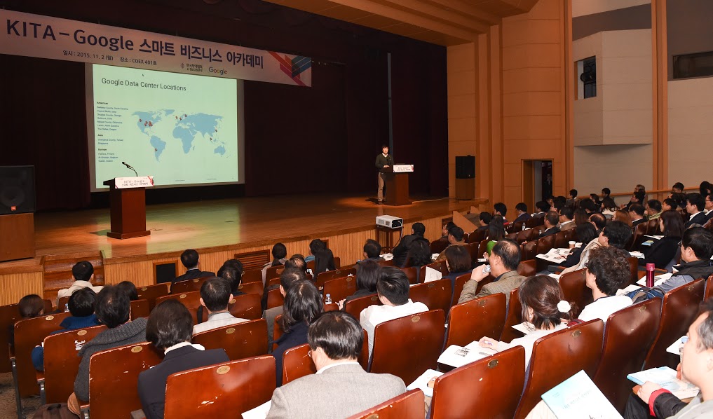 한국무역협회는 세계적인 인터넷 기업 구글과 공동으로 2일 코엑스에서 ‘KITA-Google 스마트 비즈니스 아카데미’ 설명회를 개최했다. 이날 설명회에서는 우리 중소기업의 좀 더 효율적인 경영활동 지원 및 해외시장 진출을 위한 구글의 다양한 툴 활용 방법, 온라인 해외마케팅 기법과 무역협회의 온-오프라인 융합형 지원 서비스 등이 소개되었다.