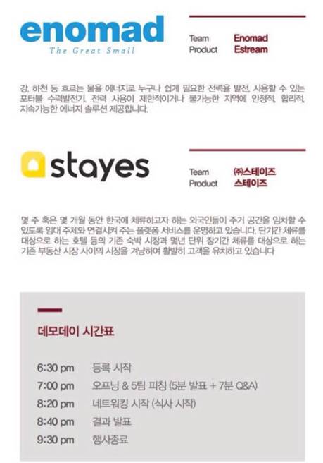이날 데모데이에는 총 5팀이 무대에 서며 최종 우승팀에게는걸스인텍 본사에서 개최하는 행사인 카탈리스트 콘퍼런스(Catalyst Conference) 또는 레이디 피치 나잇(Lady Pitch Night) 참관 티켓과 왕복 항공권이 주어진다.