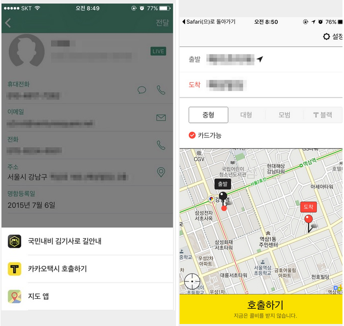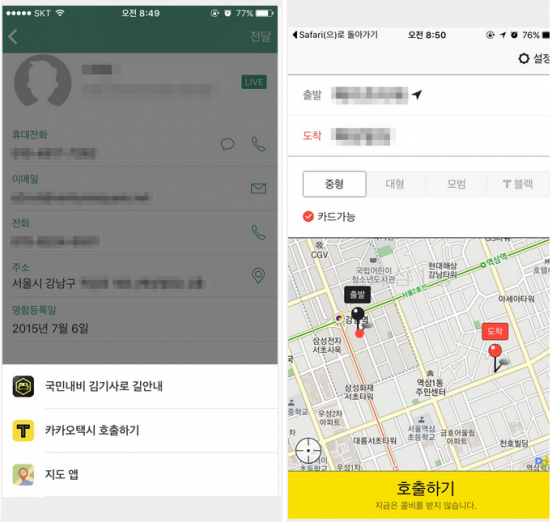 서비스나 애플리케이션의 가치는 이용하는 사람이 얼마나 자주 서비스를 찾게 되고 애플리케이션을 구동시키느냐로 판단될 것입니다. 카카오택시와의 연동은 외부 미팅이 많은 영업사원 등에게 무척 유용하게 활용될 수 있는 기능으로 자리잡을 가능성이 무척 높습니다.