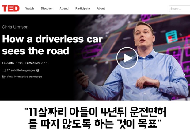 구글 무인운전차 개발프로젝트를 총지휘하는 크리스 엄슨은 CBS 60미닛 인터뷰에서 “지금 11살짜리 아들이 4년반뒤면 운전면허를 딸 수 있게 된다”며 “그런 일이 생기지 않도록 하는 것이 나의 목표”라고 말했다.