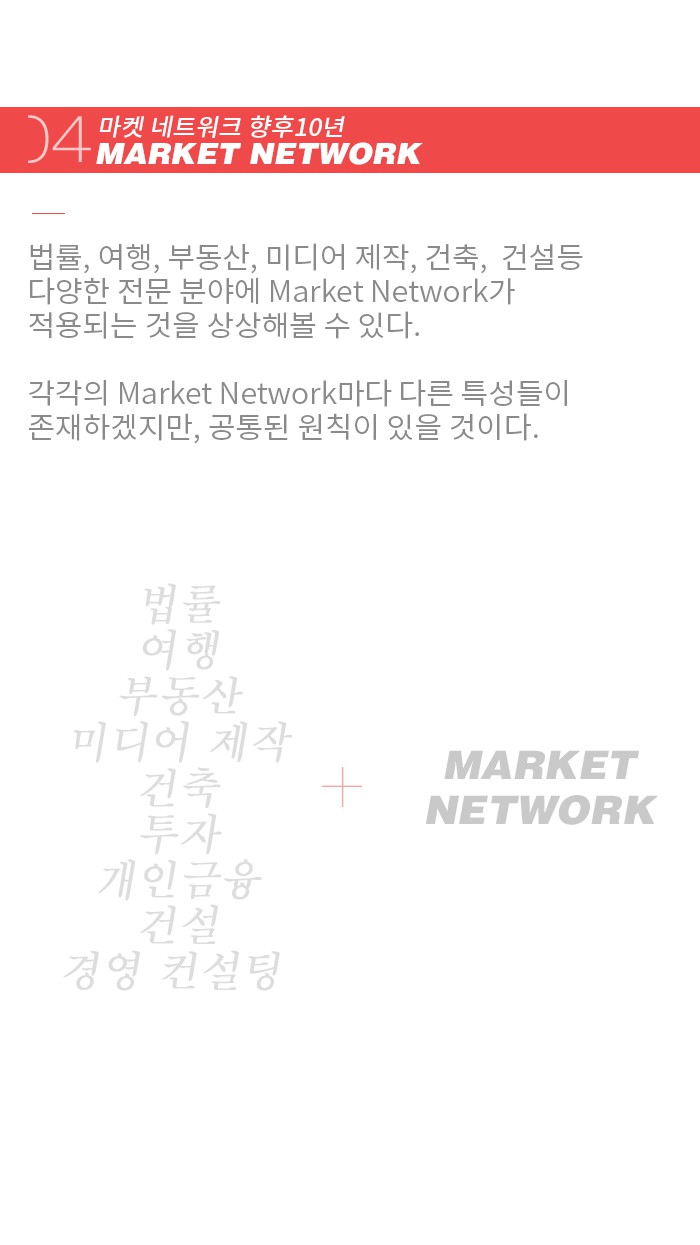 7. 법률, 여행, 부동산, 미디어제작, 건축, 건설 등 다양한 전문 분야에 Market Network가 적용되는 것을 상상해 볼 수 있습니다. 각각의 마켓네트워크마다 다른 특성들이 존재하겠지만, 공통된 원칙이 있을 것입니다.