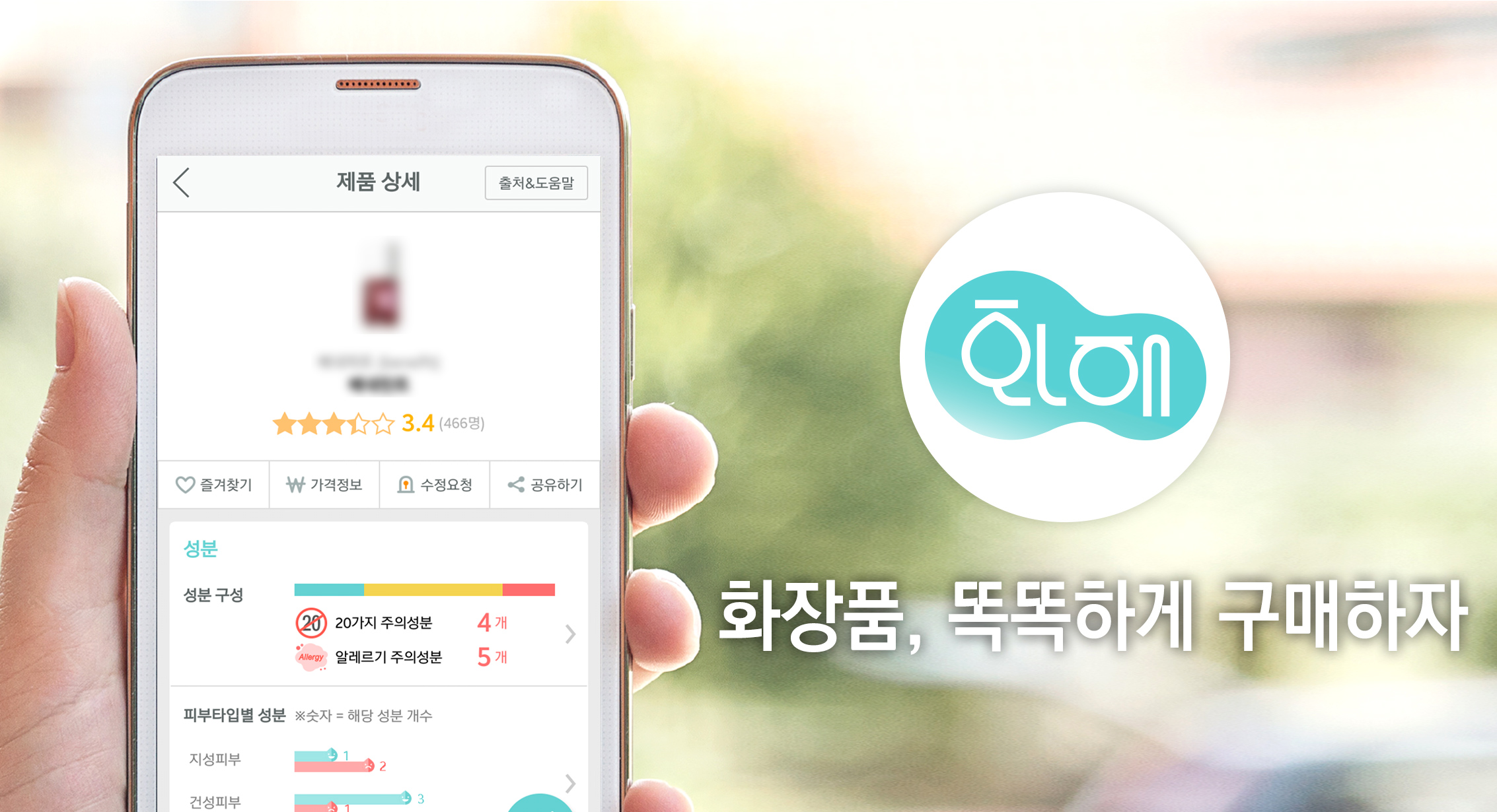 2013년 7월 첫 선을 보인 ‘화해’는 지난 2년여간 150만 명의 회원이 가입, 월 평균 40만의 순 이용자 수를 기록하며 국내 최대 규모의 모바일 화장품 앱으로 자리잡고 있다. 국내 시판중인 대부분의 화장품 정보를 데이터화 하여 5만 3천여 제품 관련 약 160만건의 성분 데이터와 54만건의 누적 리뷰 자료를 보유하고 있으며, 이는 국내에서 독보적으로 가장 많은 수준이다.