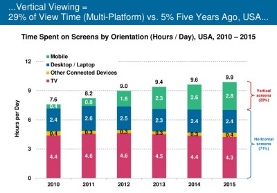 KPCB 메리 미커의 Internet Trend 2015 보고서에서도 Vertical Screen을 통한 시청 시간 증가 현상이 언급되고 있다. 5년 전 불과 5%에 불과했던 View Time이 무려 29%로까지 증가한 것을 그래프를 통해 확인할 수 있다.