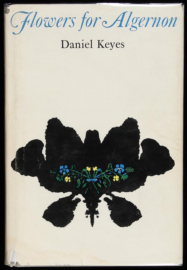 <앨저넌에게 꽃을>은 주인공인 ‘찰리 고든’이 정신지체였다가 수술을 받고 점점 머리가 좋아져 가면서 인간과 사회에 대해 완전히 다른 감정을 느끼고 몰락해가는 이야기다. 찰리는 뇌 발달 수술의 첫 번째 임상시험자였고, 아무도 그 후유증에 대해서 확신을 갖지 못했다. 그런데, 찰리는 수술을 받기 전에 먼저 수술을 받았던 앨저넌이라는 쥐가 변해가는 모습을 보고 자신도 결국 그렇게 될 것이라는 것을 예감한다. 책의 제목은 소설의 마지막에서 찰리가 “제 집 근처에 들를 기회가 있다면, 집 뒤뜰에 있는 앨저넌의 무덤에 꽃을 바쳐주세요”라는 대사에서 따왔다. 찰리는 정신지체였을 때에는 자신이 왕따당한다는 것을 몰랐지만, 이를 조금씩 인지하다가 나중에 다시 외톨이가 되어가는 과정이 단순한 SF라서가 아니라 인간의 지능과 인간성에 대해서 다시 한번 돌아보게 만드는 그런 작품이다. 일기의 형식을 빌어서 이야기가 진행되는데, 특히 수슬을 받기 전의 일기와 수술을 받은 후, 그리고 수술 부작용으로 퇴화작용이 시작된 이후의 일기의 차이가 명확하게 드러난다. 그래서 SF를 넘어서서 개인의 심리묘사라는 측면에서도 최고의 작품 중 하나로 꼽힌다. 1959년 휴고상 중편 부분을 수상했으며, 1966년에는 네뷸라 상 장편 부분 수상을 했다.
