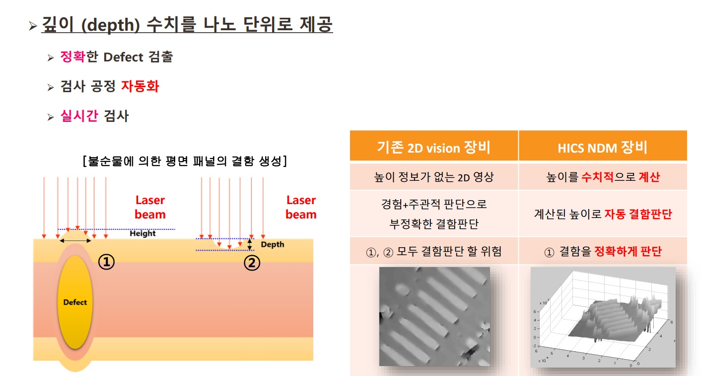 힉스 컴퍼니의 기술은 뿌리가 있는 기술이긴 하지만 그 기술의 한계를 극복하고 산업분야에 응용할 수 있도록 홀로그램을 이용해 개발한 새로운 검사 기술이라고 보시면 됩니다.