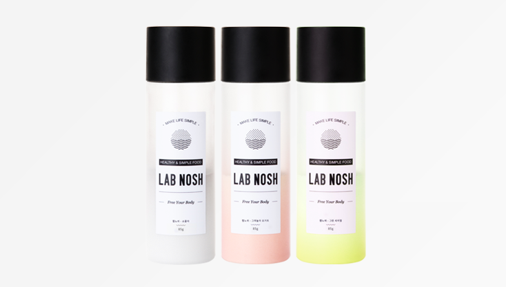 지난 10월에 출시한 ‘랩노쉬(LAB NOSH)‘는 식사 대용 유동식 간편식품이다. 기능성과 간편성을 극대화한 미래 식품으로서 섭취 방법은 매우 간단하다. 분말이 든 페트병에 물만 타서 마시면 된다.