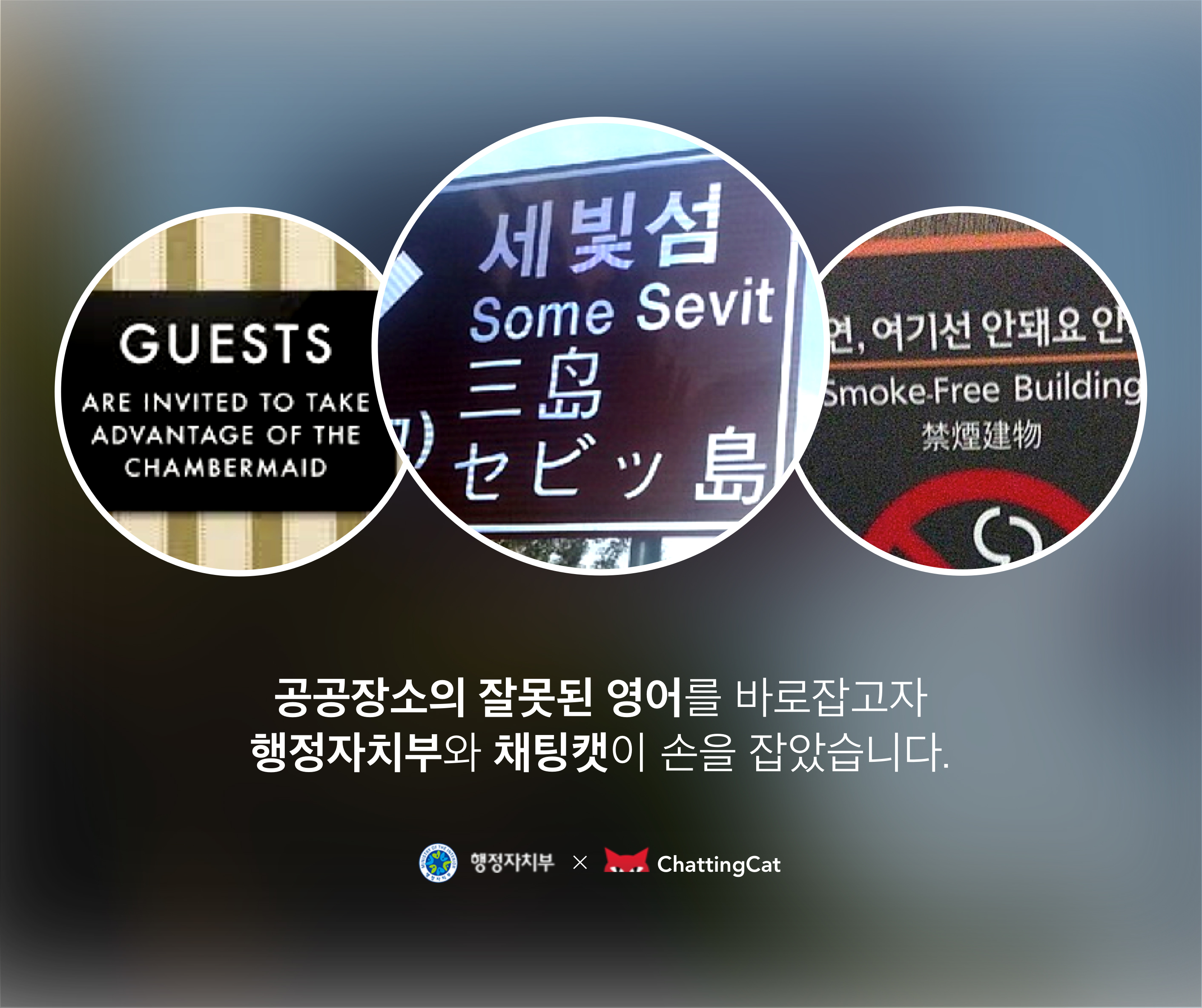 이런 문제를 해결하고자 행정자치부와 채팅캣이 뜻을 같이한다. 한국 명소의 표지판, 안내책자 등에 쓰인 영어 오류로 인해 그동안 한국의 문화가 외국인들에게 고스란히 전달되지 못한 부분을 바로잡겠다는 취지다.