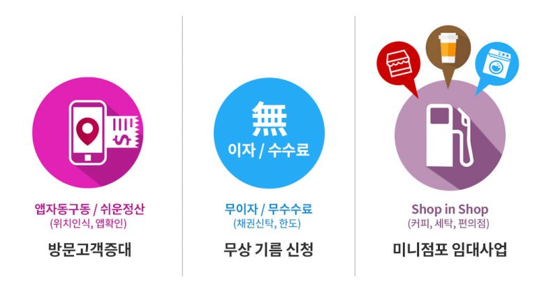 지난 13일 PG사와 유류구매 결제 및 정산이 가능하도록 결제시스템과 관련 기타 서비스 제공에 대해서도 포괄적 업무 제휴를 마친 상태다. 그리고 지난 26일에는 ‘제휴카드 신용판매 및 대금결제에 관한 사항’, ‘회원에게 제공되는 제휴카드 기능 및 제휴서비스에 관한 사항’ 등 총 6개 항목에 대해 신한카드사와 업무 제휴를 마친 상태다.