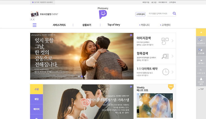 고객은 사이트 내 데이트, 웨딩, 우정, 돌 사진 상품 중 자신이 원하는 작가의 포트폴리오를 보고 최적의 작가를 선택할 수 있다. 희망 촬영일시와 장소를 선택해 예약 신청을 한 후 승인되면 촬영 결제가 진행된다.