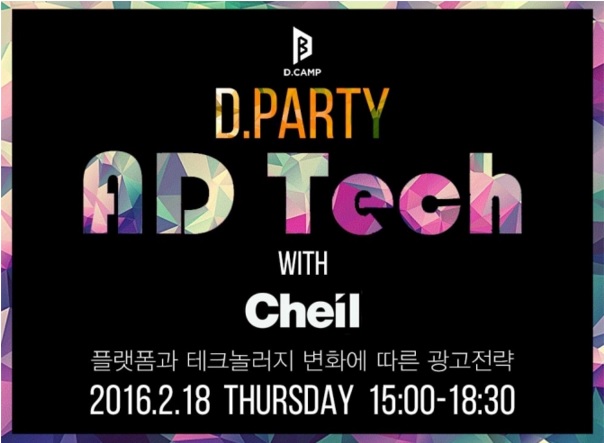 디캠프에서 매 달 준비하는 창업생태계 산업군별 네트워킹 행사인 D.PARTY의 이번 주제는 ‘애드테크’입니다. 광고업계의 시각과 투자자의 관점에서 바라본 “플랫폼과 테크놀러지 변화에 따른 광고 전략”에 대해 논의한다고 합니다. 광고업계에서는 제일기획 비욘드제일, TUNE, 모코플렉스, 와이더플래닛, 버즈빌 등이 참석하며, 투자사로는 KTB네트워크, LB인베스트먼트, 쿠팡, 글로벌브레인 등이 참석한다고 합니다.