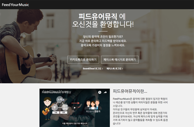 작년 2월에 출시한 ‘피드유어뮤직(FeedYourMusic)‘은 피드백 기반의 온라인 음악 교육 서비스이다. 사용자가 랩, 작곡, 연주 등을 녹음, 녹화하여 각 분야 멘토에게 전송하면, 멘토는 그 창작물을 감상한 후 텍스트, 이미지, 음원 등 다양한 형태의 피드백을 제공한다.