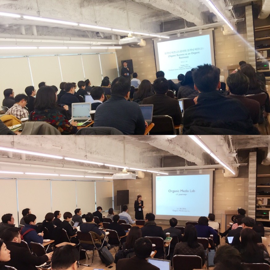 반면, 이것을 비즈니스에 적용하려면 막막하다는 것이다. 조직의 문제, 비즈니스 모델의 혁신, 수익모델의 개발, 마케팅의 변화 등 차원이 다른, 그러나 본질은 같은 문제와 질문들을 어떤 방법으로 해결해야 하는가? 즉 이론을 실전에 적용하기 위한 실험 방법론이 필요하다는 것이다. 작년 한해 기업과 클로즈 베타 형식으로, 학교에서 학생들과 방법론 수업을 통해 얻어진 결과물이 ‘오가닉 미디어 비즈니스 스쿨’이다.