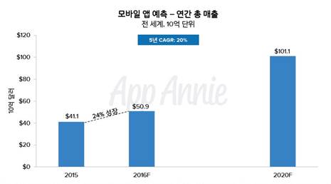 세계 최대의 모바일 앱 인텔리전스 플랫폼 앱애니는 2016년에서 2020년까지 모바일 앱 경제의 발전상을 예측한 ‘App Annie 모바일 앱 예측 보고서’를 발표했다.
