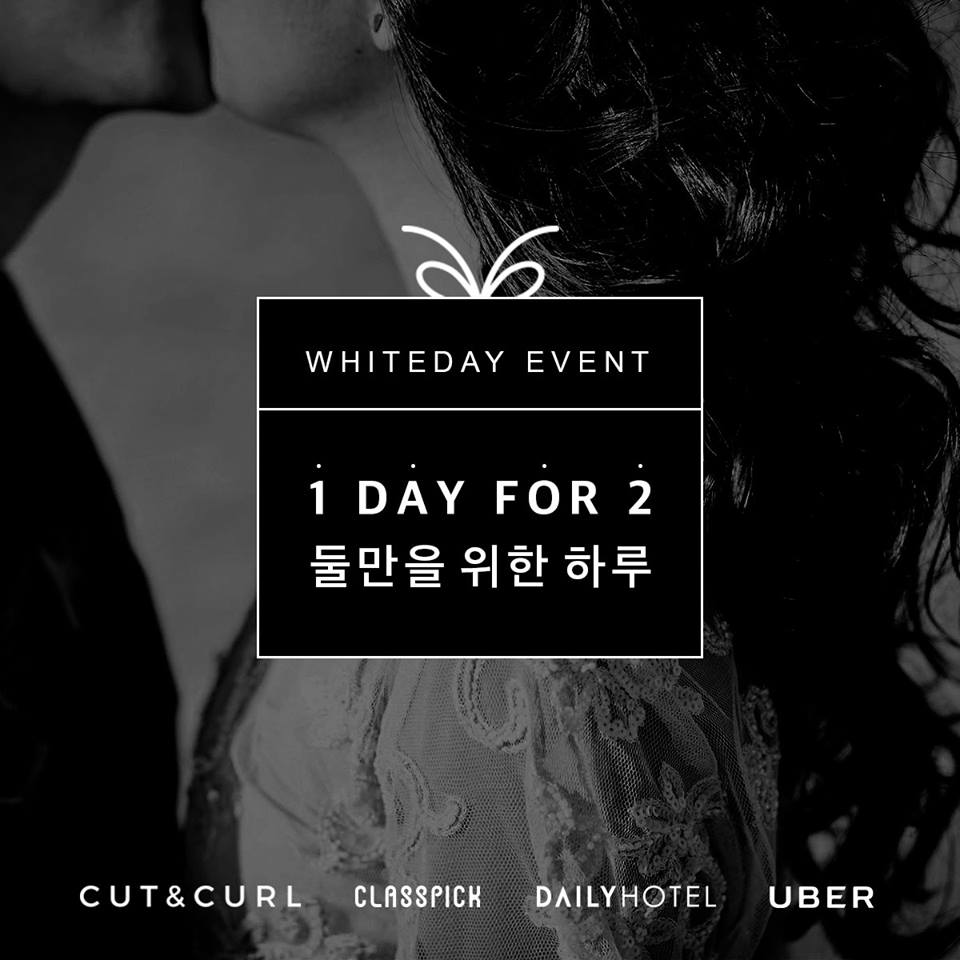 다음 달 14일 화이트데이를 앞두고 ▲운동 통합 멤버십 서비스 클래스픽 ▲헤어스타일 큐레이션 서비스 컷앤컬 ▲리무진 고급 택시 서비스 우버코리아 ▲당일 호텔 예약 서비스 데일리호텔 4개 스타트업이 공동 이벤트를 진행한다.