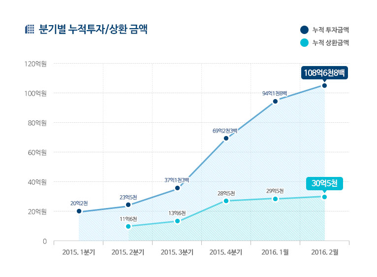 부동산 P2P 금융 플랫폼 테라펀딩이 부동산 P2P업계 최초로 누적 투자금액 100억 원을 돌파했다. 국내 전체 P2P 금융 플랫폼 중에서는 ‘8퍼센트’에 이어 두번째다. 현재, 테라펀딩은 2월 17일 기준 누적 투자금액 108억 7천만 원, 연 평균 수익률 13.03%, 부도율 0%를 기록 중이다.