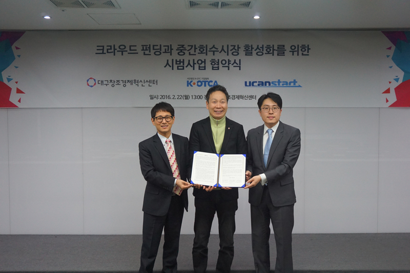 이에 대구창조경제혁신센터는 혁신센터에서 육성한 우수창업기업들을 대상으로 지분형 크라우드 펀딩에 발굴, 추천을 하고 유캔스타트와 함께 활성화를 위해 최선을 다한다. 그 후 투자자금의 중간회수 시장을 도모하기 위한 통로로 금융투자협회가 운영하고 있는 비상장 주식거래 시장인 K-OTC와 2부시장인 K-OTC BB를 활용하는 시범사업운영에 힘을 모으기로 하였다. 또한, 향후 3사는 각 기관이 공동으로 참여하는 실무협의회를 운영하며 최선을 다할 것을 다짐했다.