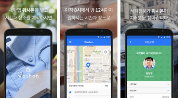 - 서비스 내용(iOS/Android): 모바일앱으로 부르는 세탁 서비스. 아침 8시부터 자정까지 원하는 시간을 예약하면 전문 교육을 받은 워시온 매니저가 이용자의 집에 방문하고 세탁물을 수거해감. 전문 세탁 공장에서 깨끗하게 세탁한 후, 이용자가 예약한 배달 일시에 맞춰 세탁물을 가져다 줌. 워시온은 표준화된 세탁 물류 관리 및 서비스 체계를 구축함