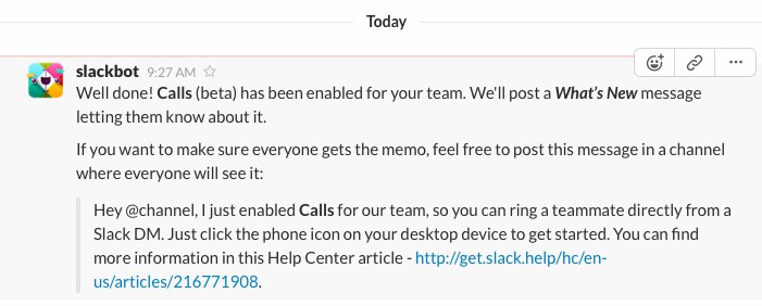 아아 이런. 안타깝게도 제가 통화 품질을 테스트 해보려는 상대방이 아직 최신 버전을 설치하지 않아 통화를 할 수 없다는 메세지를 만나고 말았습니다. 실제 통화 연결을 해보지는 못했지만 협업 도구에 있어서 분명 음성 통화는 중요한 요소가 될 것입니다. 메세징과 자료의 공유로 업무를 진행하고 상황에 대한 이해 수준을 Align 하는 것은 당연히 가능한 일이지만 급박하게 돌아가는 상황에서는 분명 말(Verval)을 이용한 것 만큼 신속한 것도 없을겁니다.